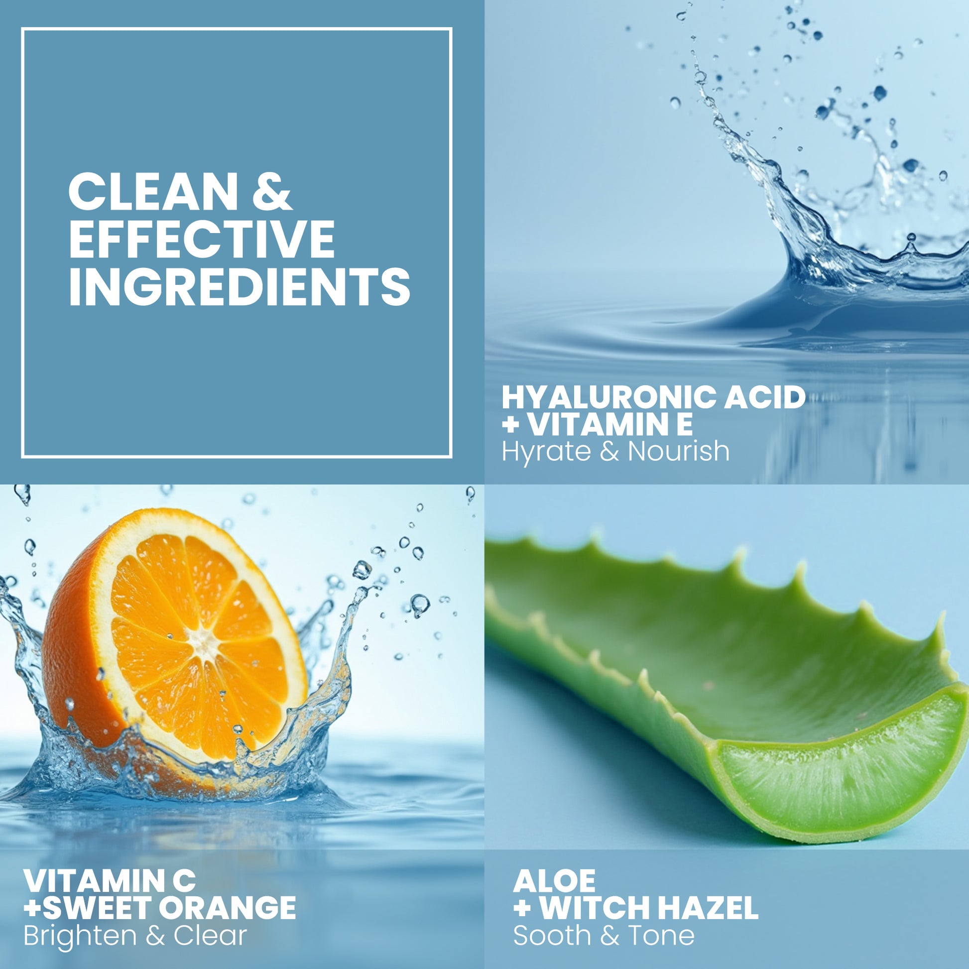 Unveil Radiant, Youthful Skin with Our Vitamin C Serum: This advanced formula is enriched with Sodium Ascorbyl Phosphate (Vitamin C), Ferulic Acid, Vitamin E, and Botanical Hyaluronic Acid, making it a powerful ally against skin aging, dullness, and dehydration.