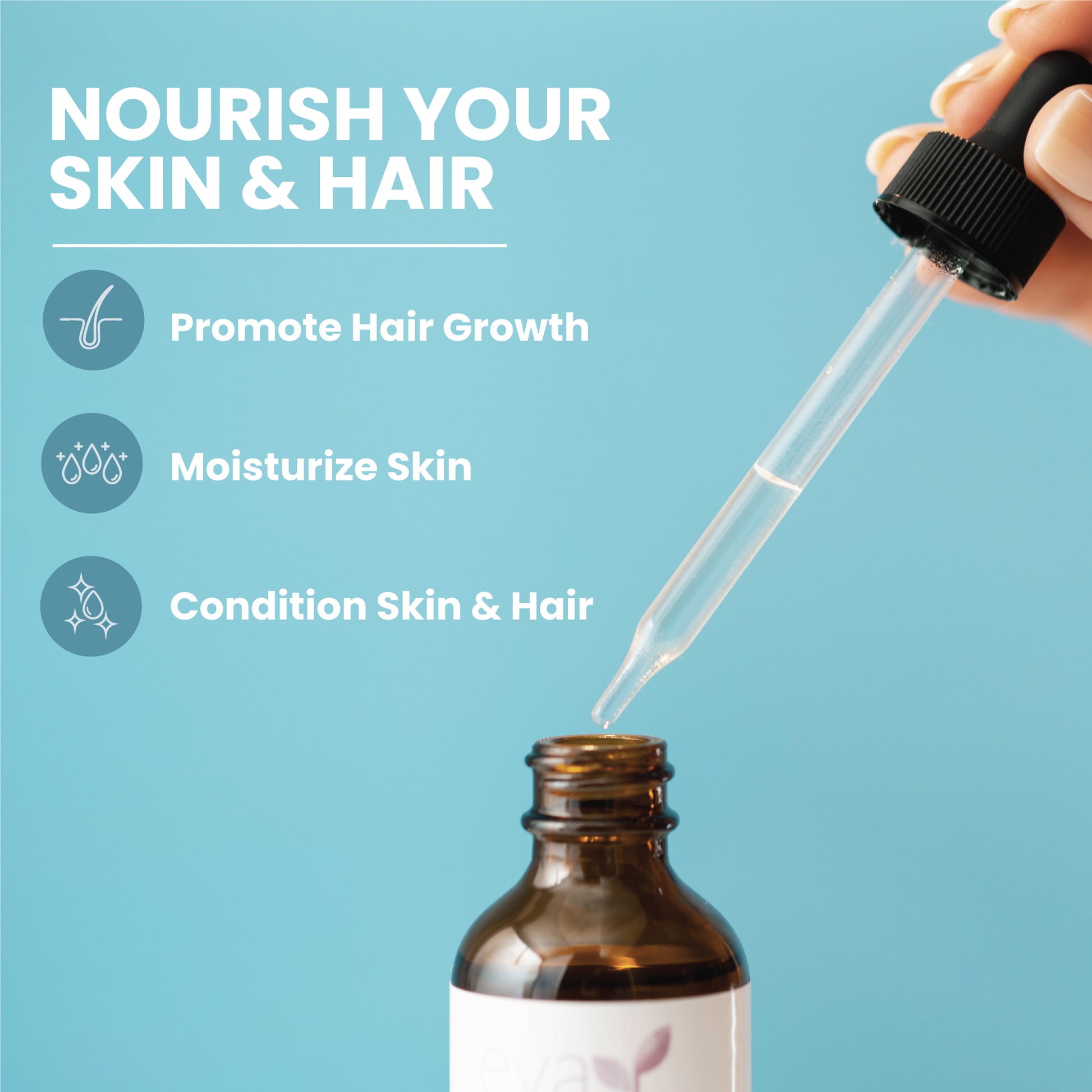 Eva Natural's Pure Castor Oil serves as an organic hair growth solution that promotes thicker, longer lashes and brows. Our Castor Oil is rich in Vitamin E and Omega-6 fatty acids which help promote healthy hair growth and repairs heat damage. Castor Oil also is great for your skin, it contains viscous oil packed with ricinoleic acid, a fatty acid known to soften and protect skin layers! With regular use, your skin and eyelashes will thank you!