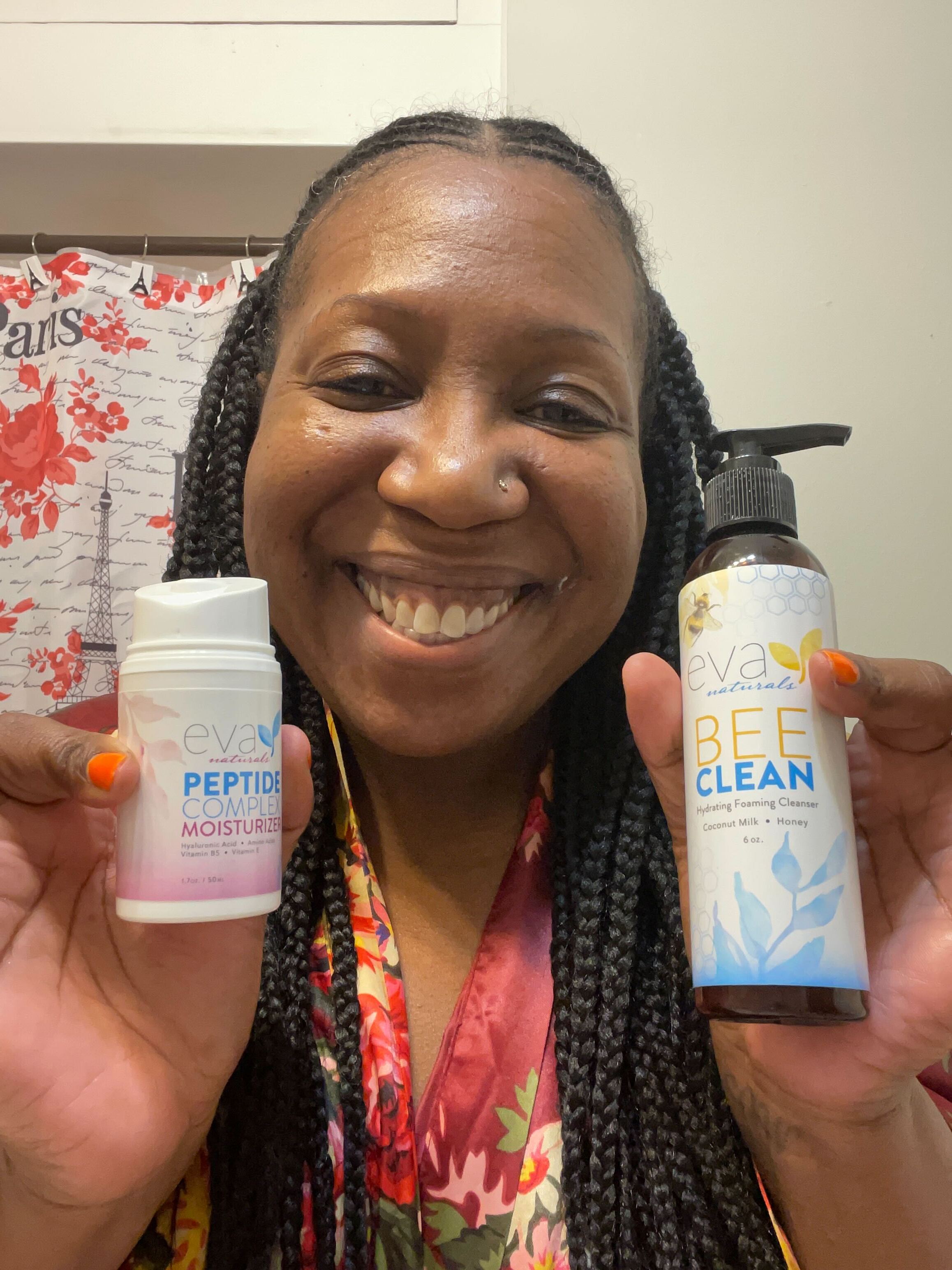 Eva Naturals is excited to bring you our Collagen Boosting Peptide Complex Moisturizer. With a unique formulation to bring you the benefits of sunflower, shea butter and green tea, this moisturizer will work to smooth wrinkles and fine lines while giving you the silky-soft texture of your dreams!