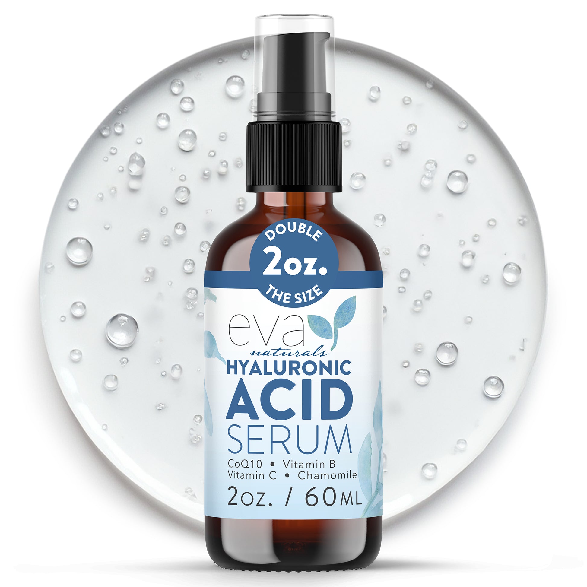 Eva Naturals is happy to bring you our Hyaluronic Acid Serum, a unique formulation that can fit into any skincare routine with ease! Packed with peptides, vitamins and botanicals, this serum works to hydrate your skin, smoothing out wrinkles and fine lines while boosting your collagen and giving your skin the silky smooth texture it deserves!