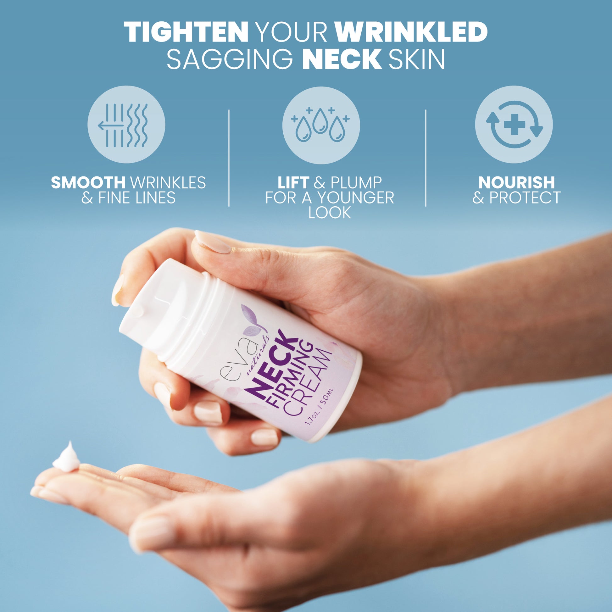 Looking for an effective solution to combat neck wrinkles and sagging skin? Eva Naturals Neck Firming Cream is your answer! Our unique cream is formulated with natural ingredients that help reduce the appearance of the dreaded turkey neck while restoring elasticity and tone. Before you know it, your skin will appear more youthful and feel soft to the touch!