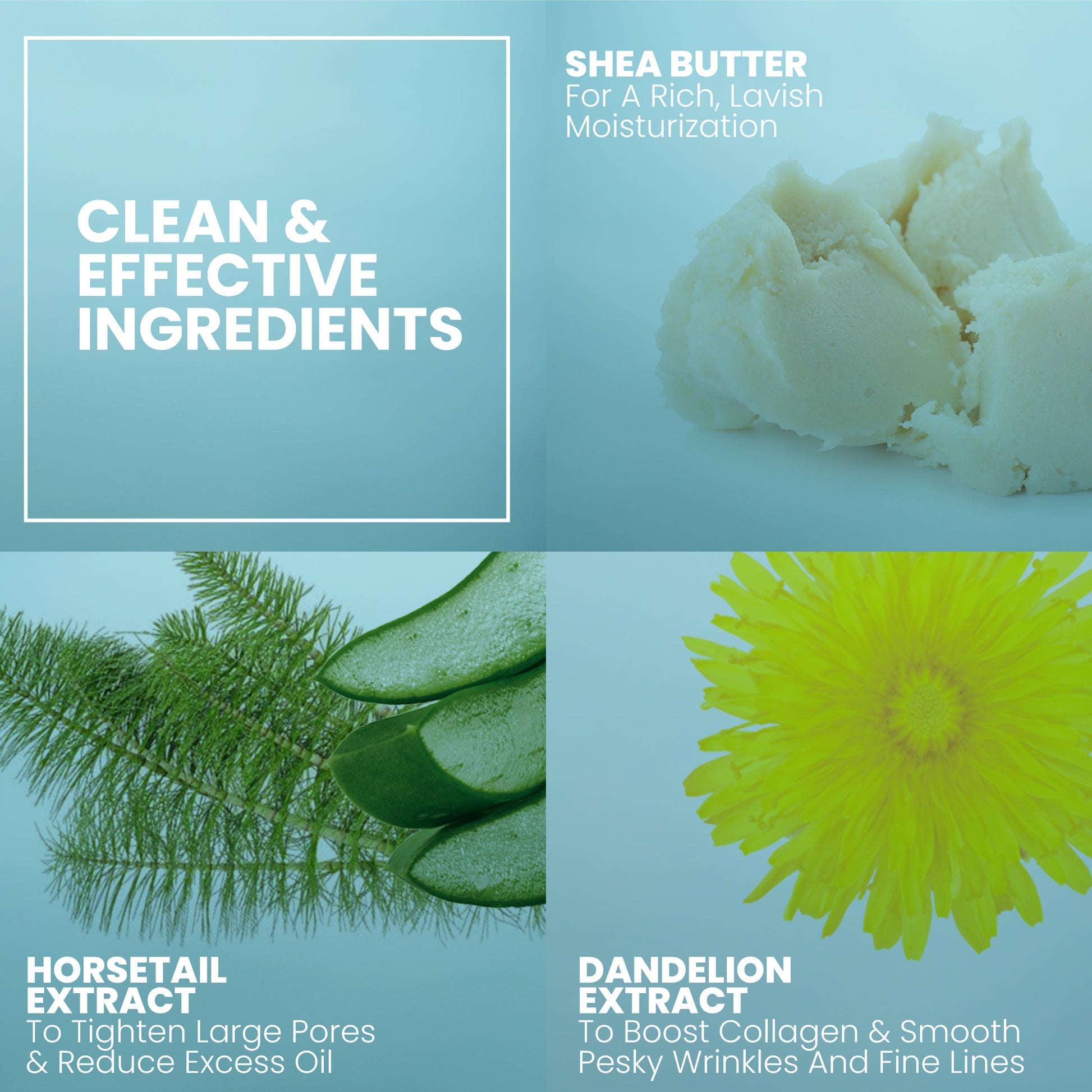 Aloe Barbadensis Leaf Juice (Organic Aloe), Aqua (Deionized Water), Helianthus Annuus Seed Oil (Organic Sunflower), Isopropyl Palmitate, Glyceryl Stearate, Cetyl Alcohol, Glycerin (Kosher, Vegetable), Stearic Acid, Simmondsia Chinensis Seed Oil (Organic Jojoba), Phenoxyethanol (Preservative), Lecithin, Pentylene Glycol, Tocopheryl Acetate (Vitamin E), Butyrospermum Parkii Butter (Shea Butter), Panthenol (Vitamin B5), Xanthan Gum, Polysorbate 20, Retinol (Vitamin A), Camellia Sinensis Leaf Extract (Organic Green Tea), Ethylhexylglycerin (Preservative), Caesalpinia Spinosa Gum (Tara, Botanical Hyaluronic Acid), Alcohol, Potassium Phosphate, Sodium Hydroxide, Tocopherol (Vitamin E), Propolis Extract (Propolis), Potassium Sorbate (Preservative), Sodium Benzoate (Preservative), Centella Asiatica Extract (Organic Gotu Kola), Equisetum Arvense Extract (Horsetail), Geranium Maculatum Extract (Wild Geranium), Taraxacum Officinale Extract (Organic Dandelion)