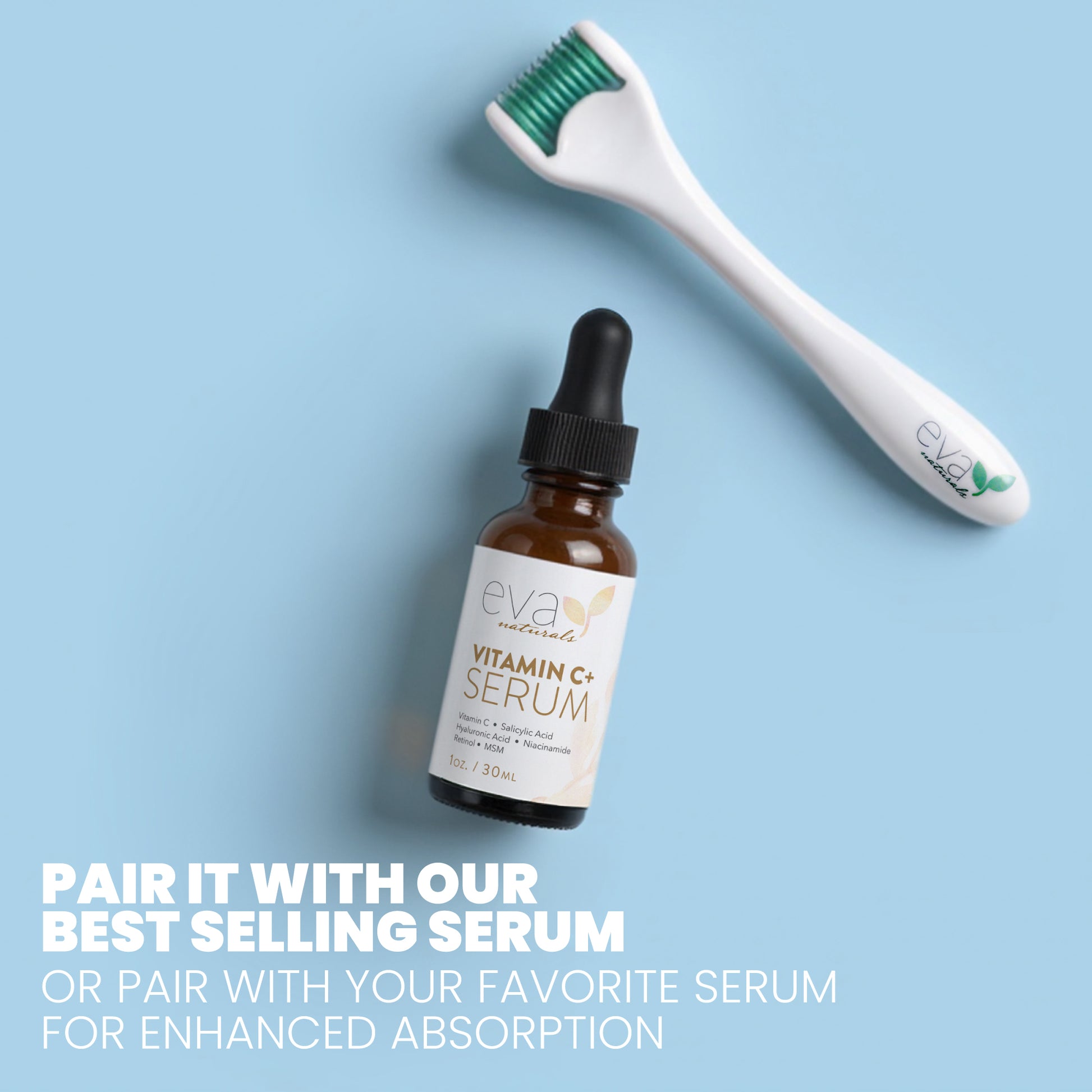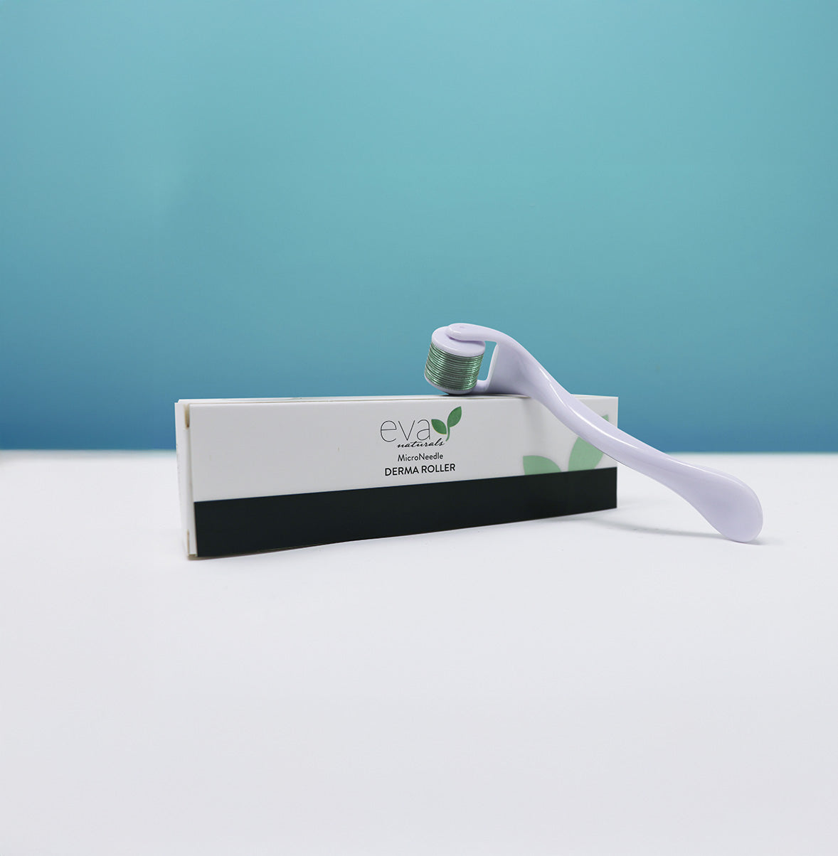 Here at Eva Naturals, we are excited to bring you our new Microneedle Derma Roller! Clinically shown to increase your skin’s collagen production, this easy-to-use and safe tool helps to increase the firmness and elasticity of your skin, while also helping other skincare products and serums penetrate deeper into the skin, increasing their effectiveness. Microneedling can even encourage hair growth and scar tissue regeneration!