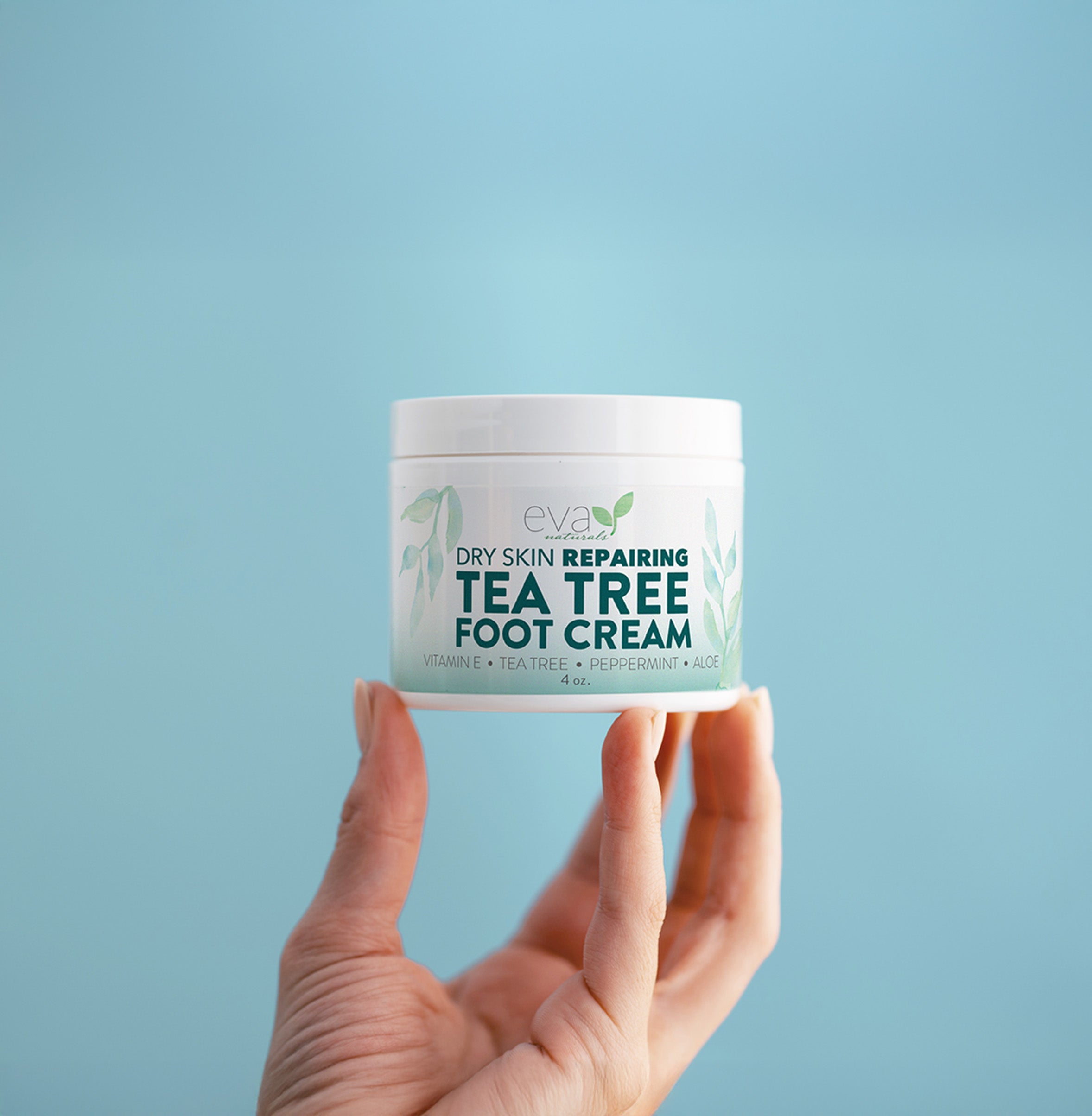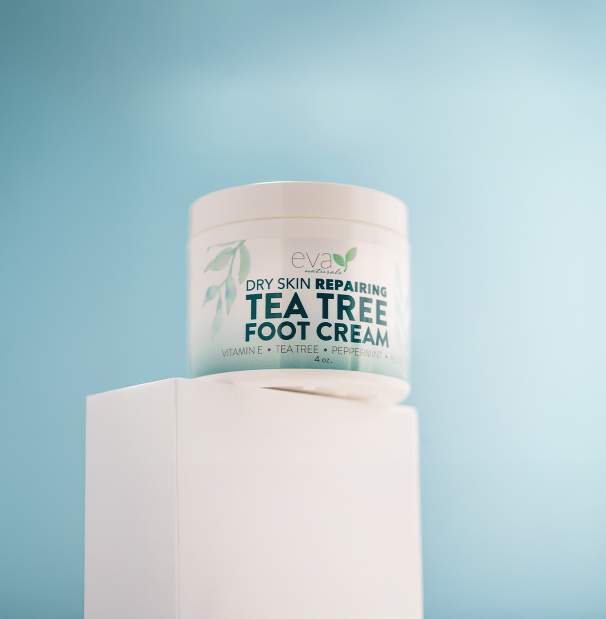 Refresh and Soothe Your Feet with Our Tea Tree Foot Cream: This cream combines tea tree oil with natural extracts and oils to hydrate, soothe, and refresh tired, dry feet.